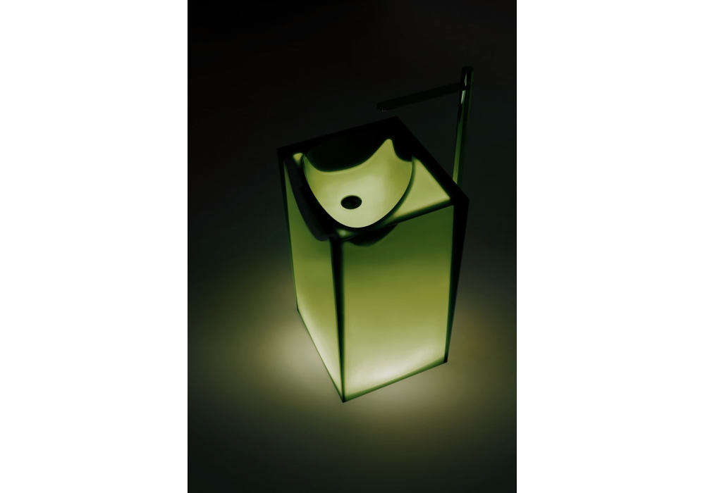 Astro e Aura conçu par Marco Piva pour Antonio Lupi est un lavabo sur pied en Cristalmood ou Icemood avec siphon de sol, disponible avec ou sans éclairage LED. Son corps mat est équipé d'une bonde à écoulement libre, d'un siphon et d'un tuyau rigide.