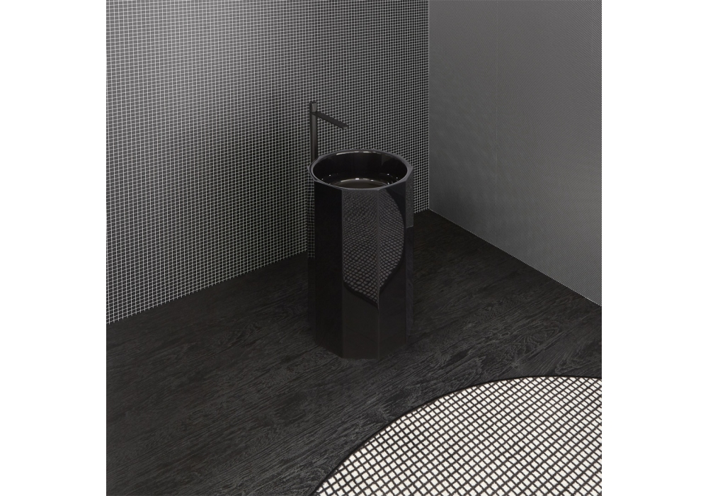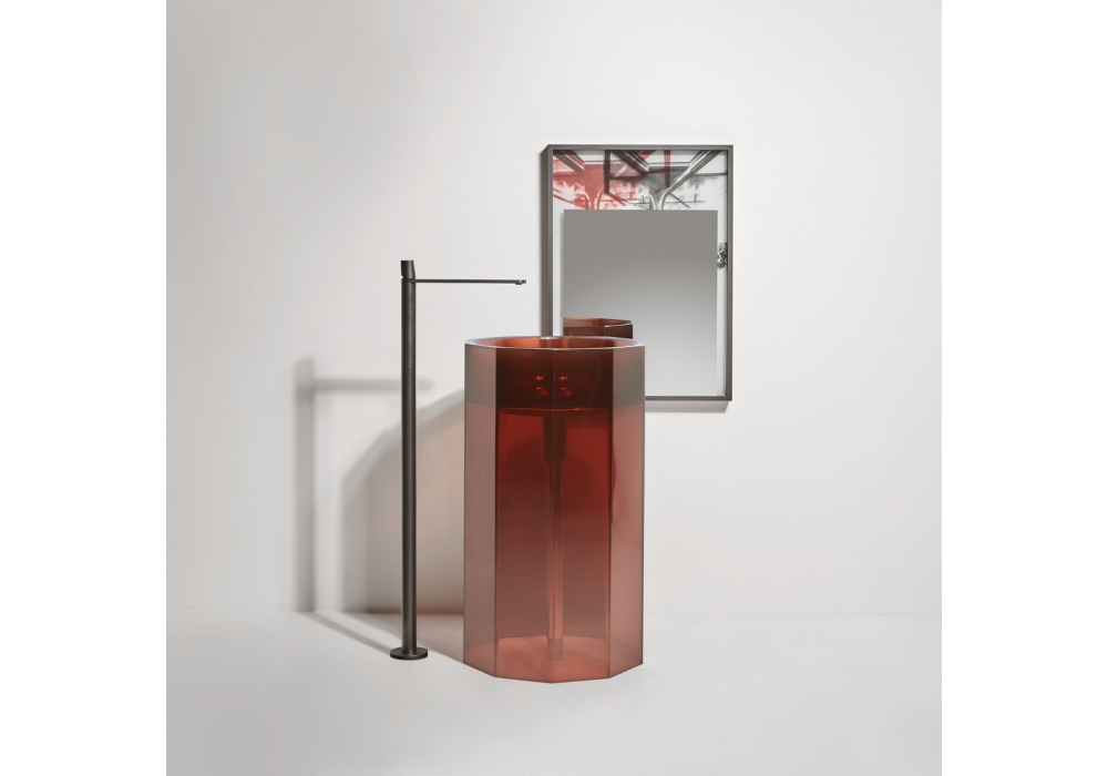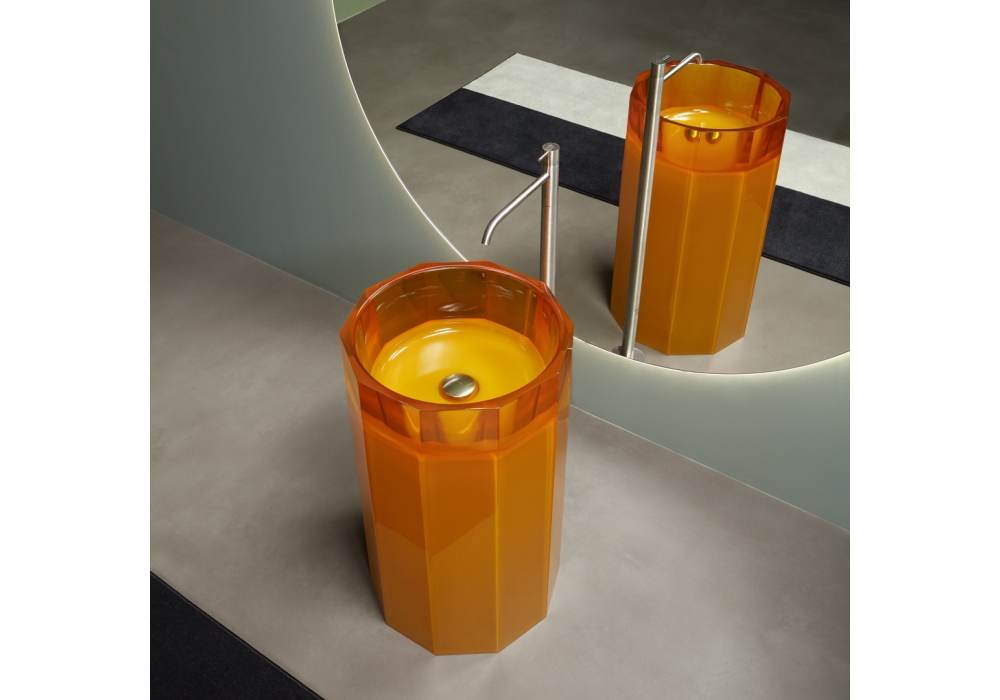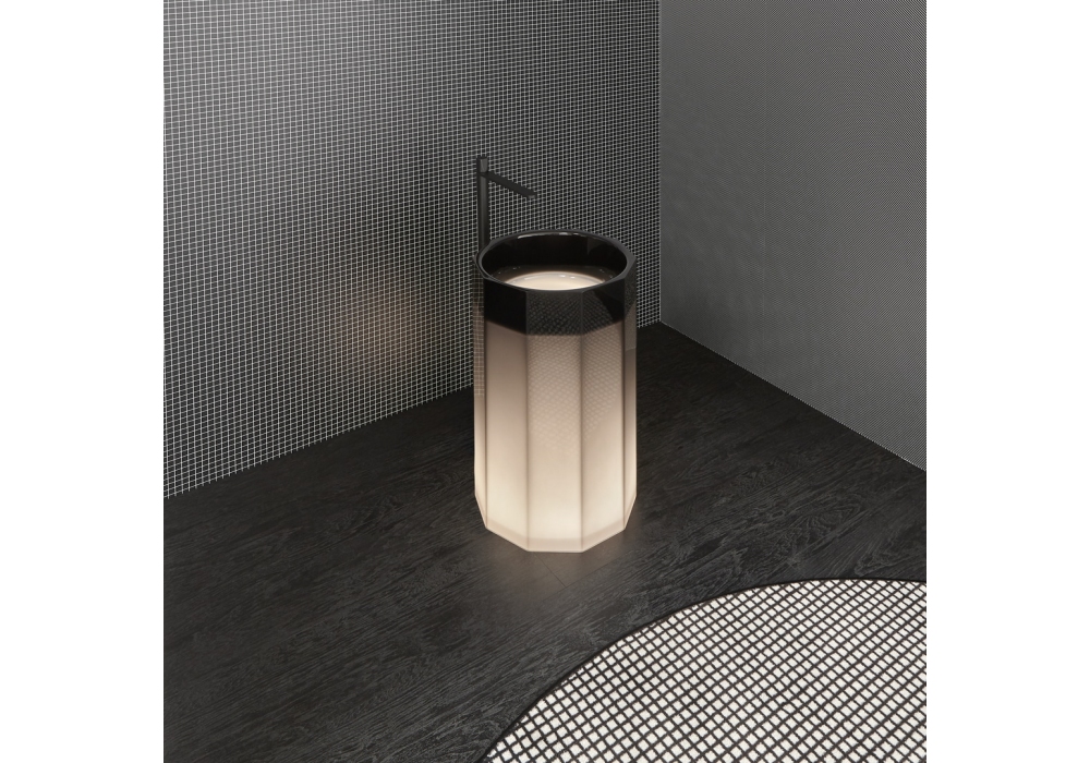 Vitreo conçu par Carlo Colombo et Antonio Lupi est un lavabo sur pied en Cristalmood ou Icemood avec siphon de sol, avec ou sans éclairage LED, avec un corps opaque complet avec vidage à flux ouvert, siphon et tuyau rigide.