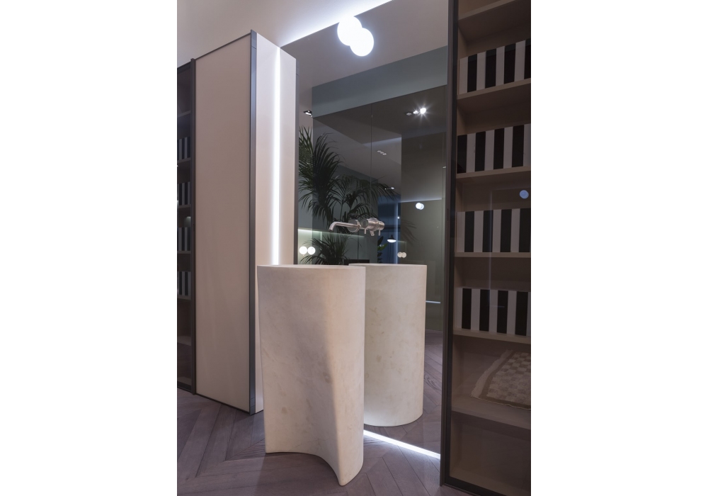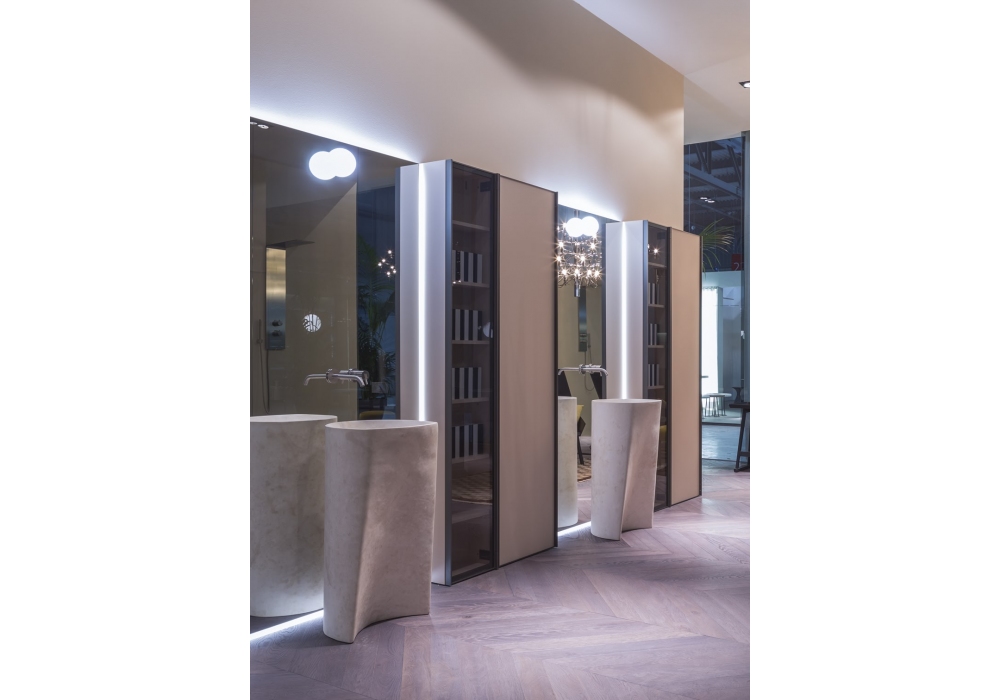 Rilievo conçu par Carlo Colombo pour Antonio Lupi est un lavabo sur pied en pierre avec siphon de sol, complet avec siphon ouvert, siphon et tuyau flexible.