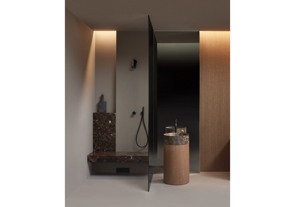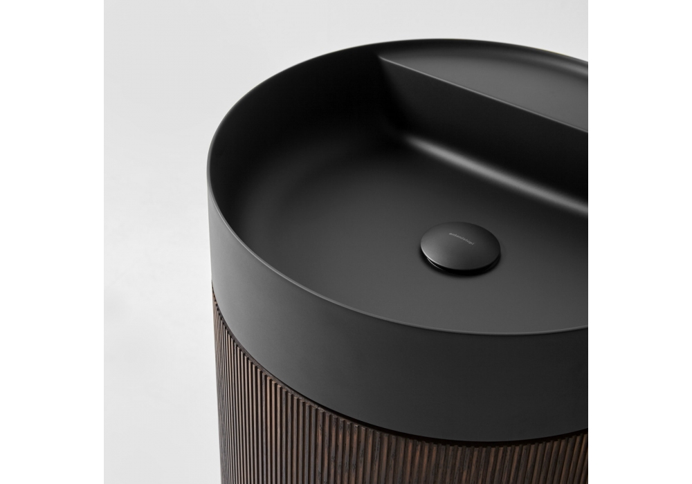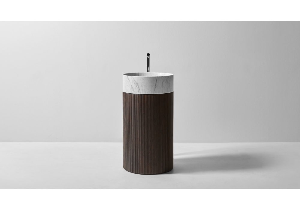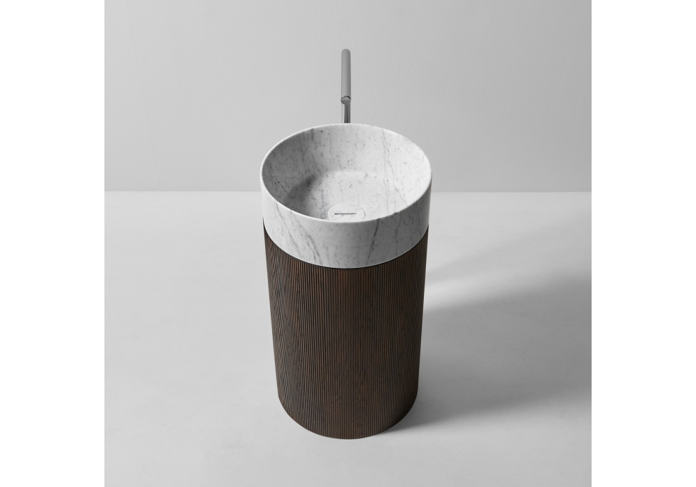 Rigatino conçu par Antonio Lupi, est un lavabo sur pied avec vasque Flumood ou Colormood, ou pierre, et piédestal en bois. Il est livré avec une bonde de sol, une bonde à écoulement libre, un siphon et un flexible.