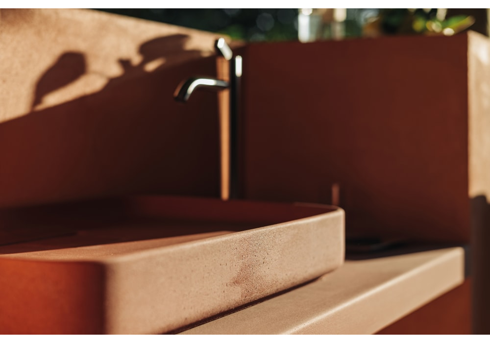 Petra conçu par Diego Vencato et Marco Merendi, est un lavabo à poser en Cementoskin® ou en marbre disponible en différentes finitions. À écoulement libre, avec vidage.