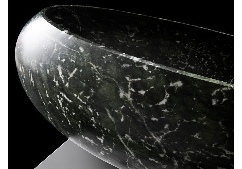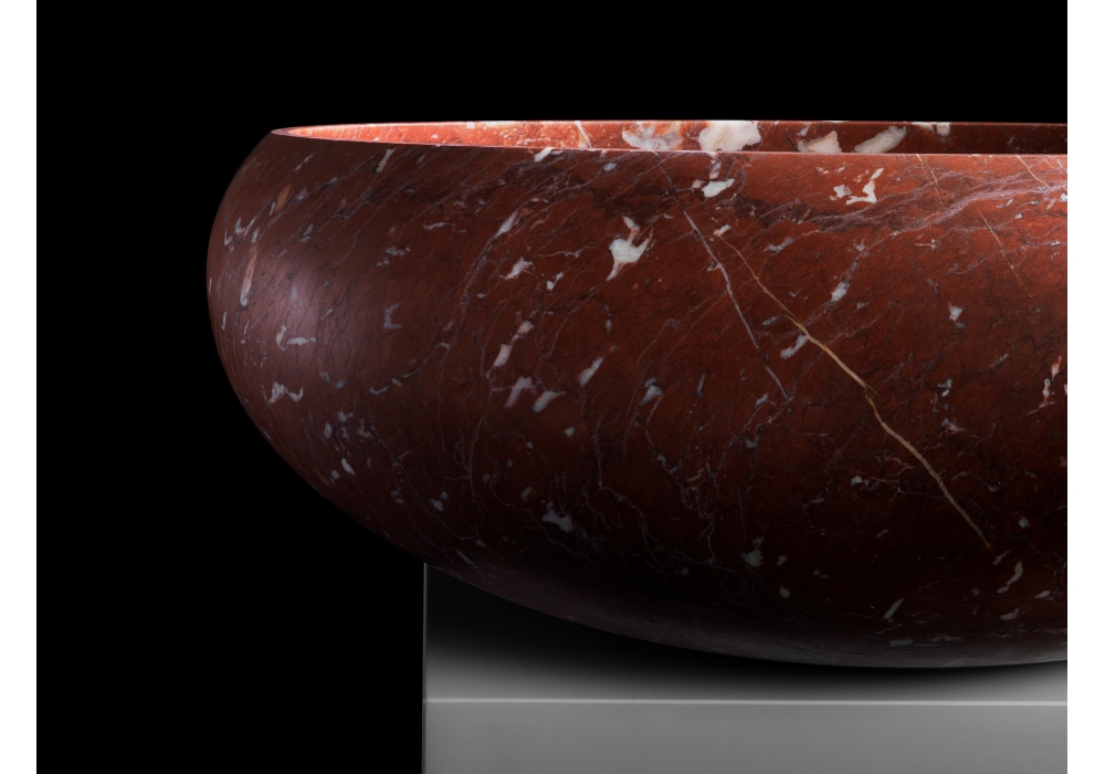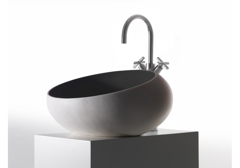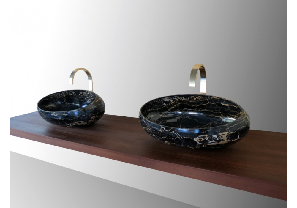 Gong conçu par Enzo Berti pour Kreoo est un lavabo avec une vasque de forme ellipsoïdale avec une coupe diagonale. Fabriqué entièrement en marbre dans différentes finitions. La surface interne peut également être réalisée dans un contraste chromatique, avec un vernis texturé. Disponible en différentes dimensions.