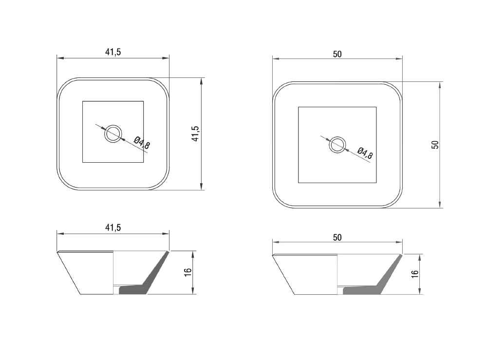 | Dimensions | 41.5 x 41.5 x H 16 cm; 50 x 50 x H 16 cm. |