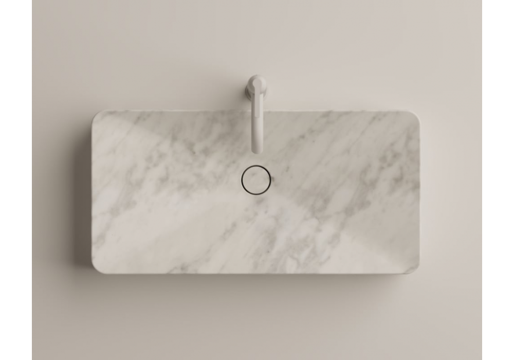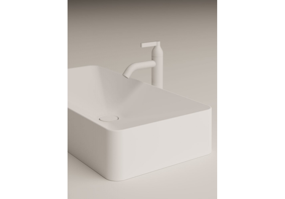 Raso conçu par Benedini Associati pour Agape, est un lavabo à poser rectangulaire en solid surface blanc, Petit Granit ou marbre en différentes finitions, réalisé par thermoformage, avec vidage libre et sans trou pour robinet. Le lavabo comprend un vidage avec bouchon dans la même finition que le lavabo.
