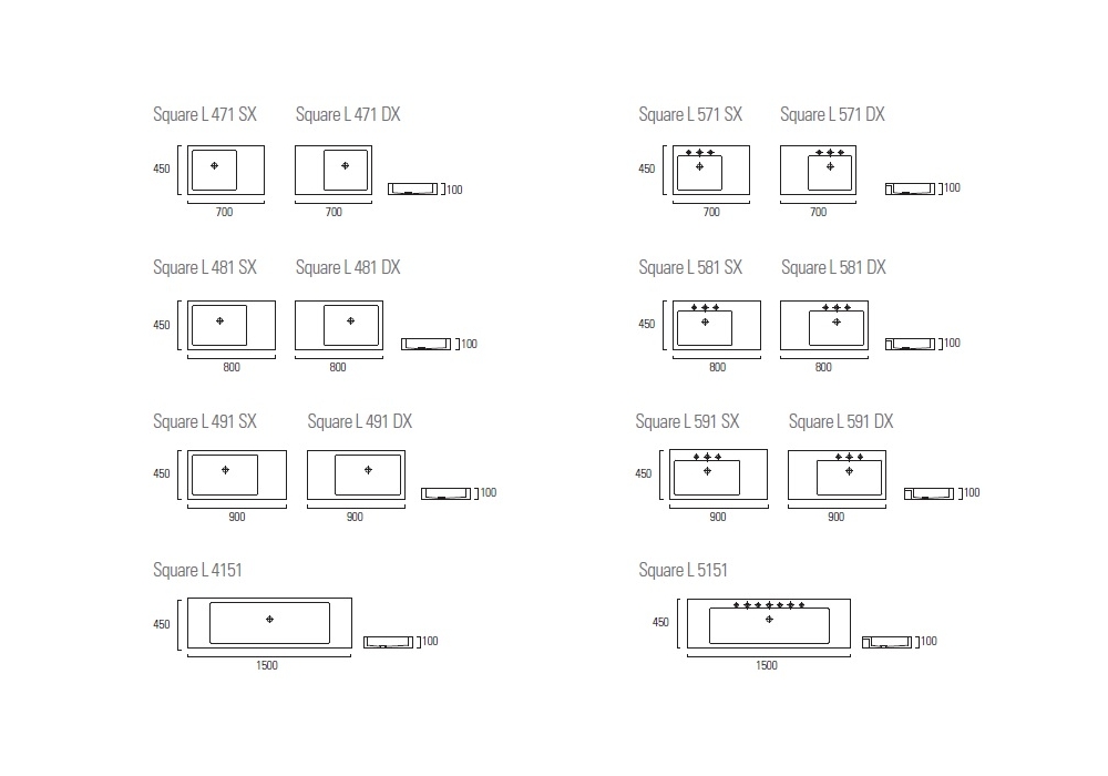 Square conçu par Nespoli & Novara pour Neutra est un lavabo à poser/mural disponible en différentes finitions et 14 modèles. Disponible avec ou sans trous.