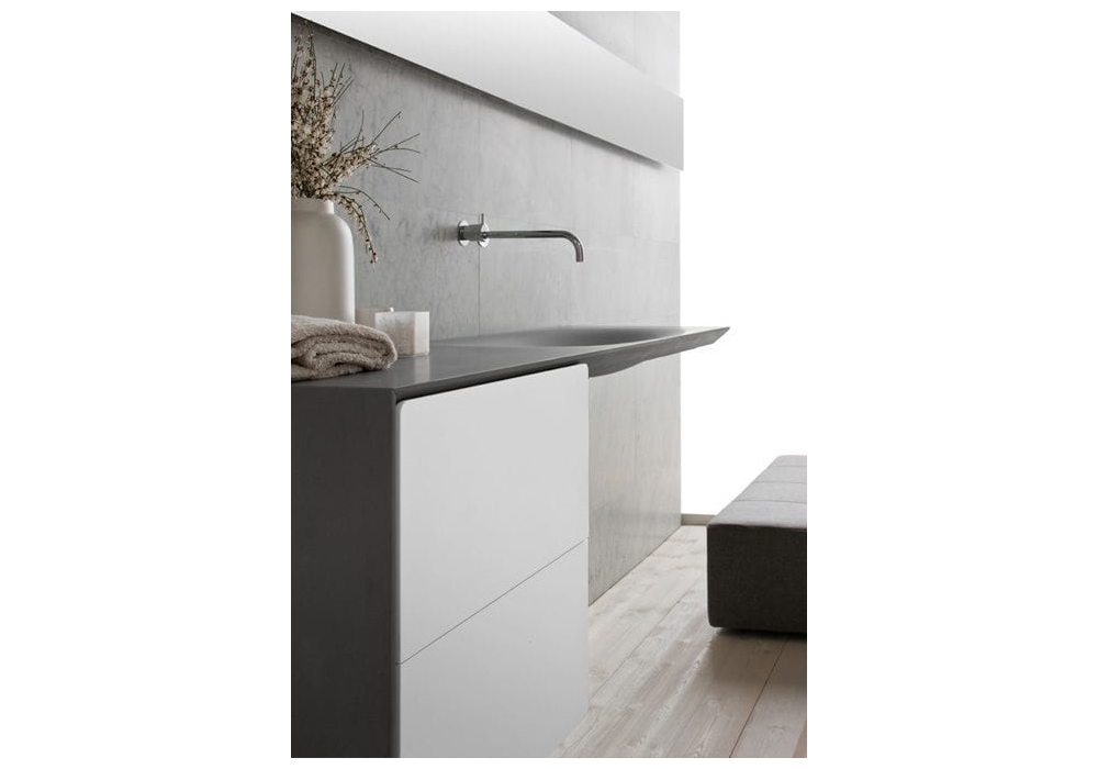 Neos conçu par Luca Martorano pour Neutra est un meuble mural avec lavabo intégré disponible en différentes finitions et 2 dimensions. Frontales tiroirs disponibles en finitions de pierre ou bois.