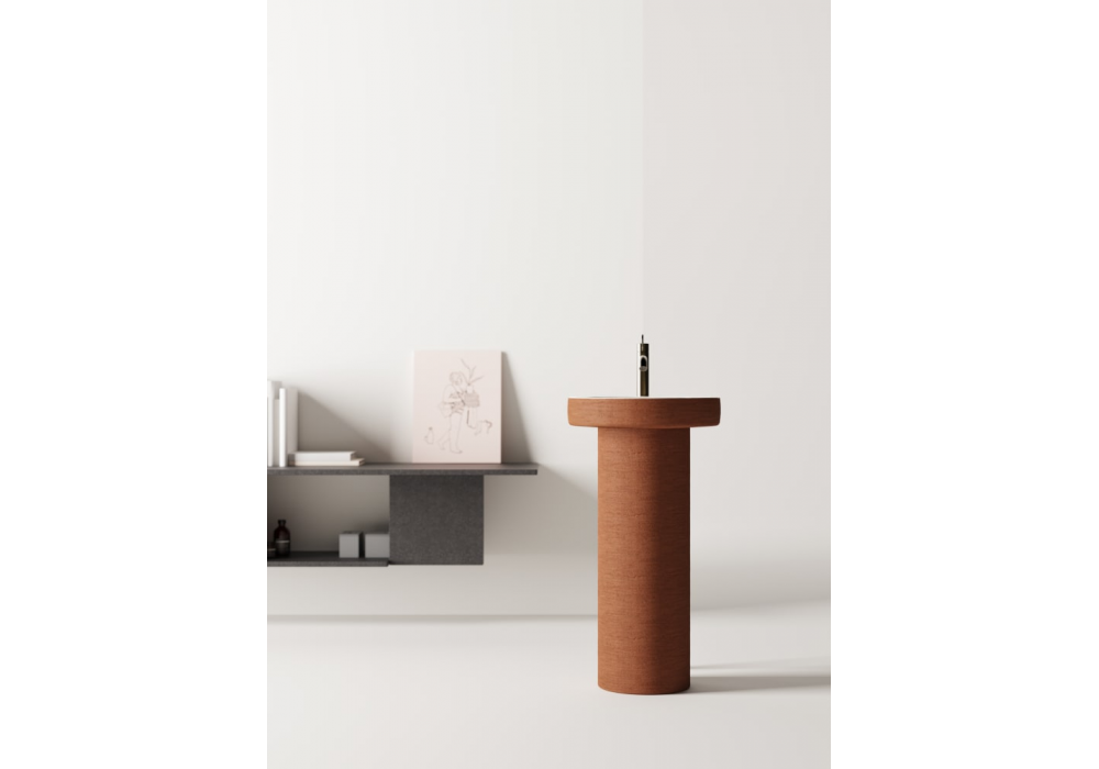 Cenote conçu par Patricia Urquiola pour Agape est un lavabo à colonne en argile réfractaire. Il n'a pas de trou pour le robinet. Vidage libre. La finition extérieure est disponible en terre naturelle ou terre foncée, toutes deux avec un intérieur émaillé brillant. Vidage avec bouchon en émail assorti inclus. Disponible en deux tailles et dans la version avec vidage mural ou au sol.