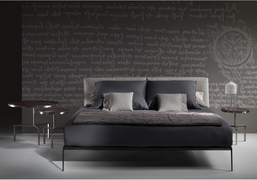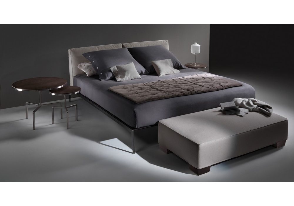 Lifesteel is a bed designed by Antonio Citterio for Flexform. Base frame: in metal covered with hide leather. Base: with platform in wood with polyurethane padding covered with a protective fabric lining. Headboard: metal insert with polyurethane and dacron padding, covered with a protective fabric lining. Feet: in metal. Mattress not included.