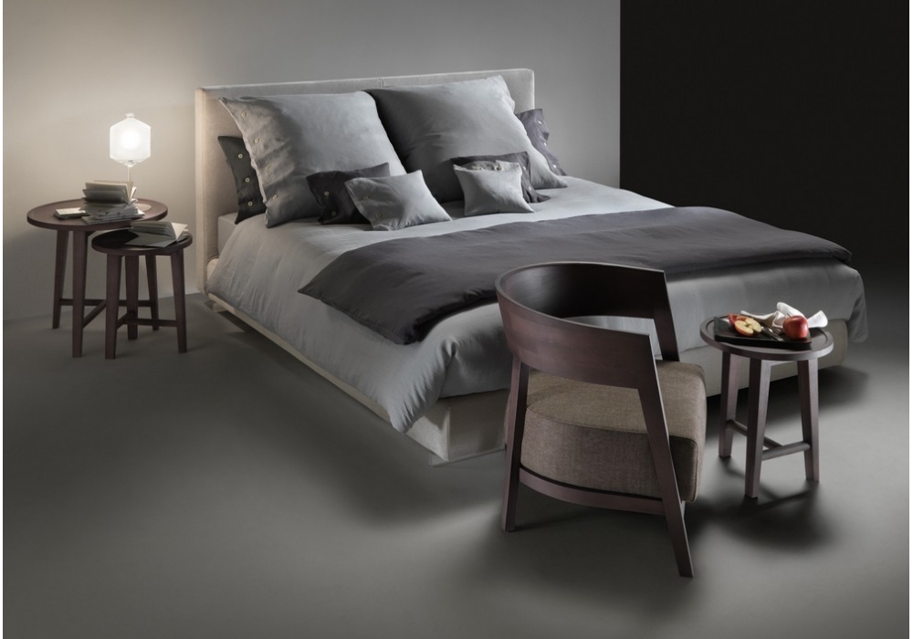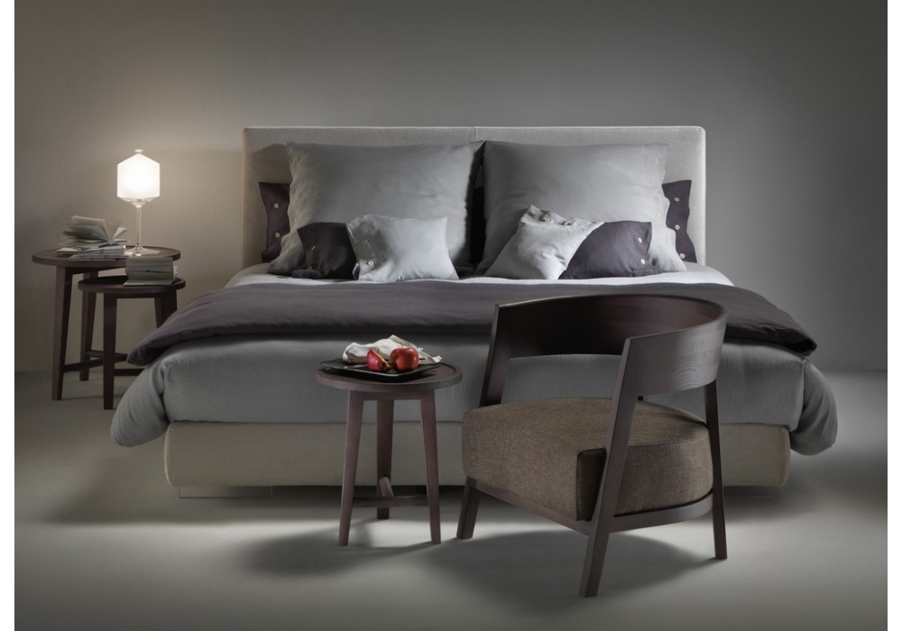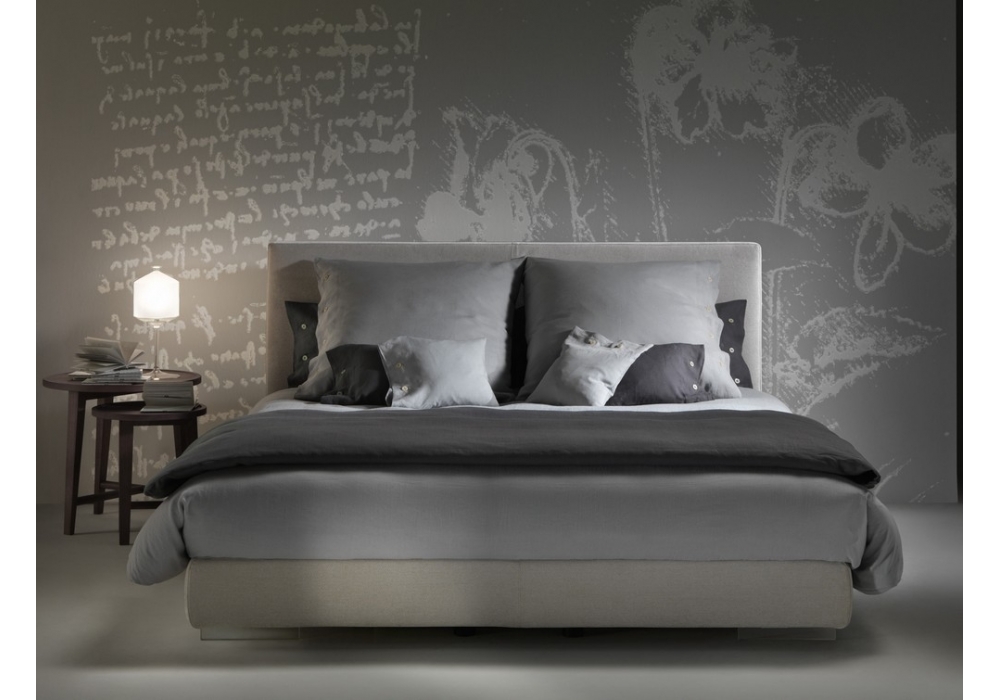 Magnum is a bed designed by Centro Studi for Flexform. Base in wood with polyurethane padding covered with a protective fabric lining. Base with platform fitted with wooden slats. Headboard: in wood with polyurethane padding, covered with a protective fabric lining. Feet: in glossy transparent metacrylic. Mattress not included.