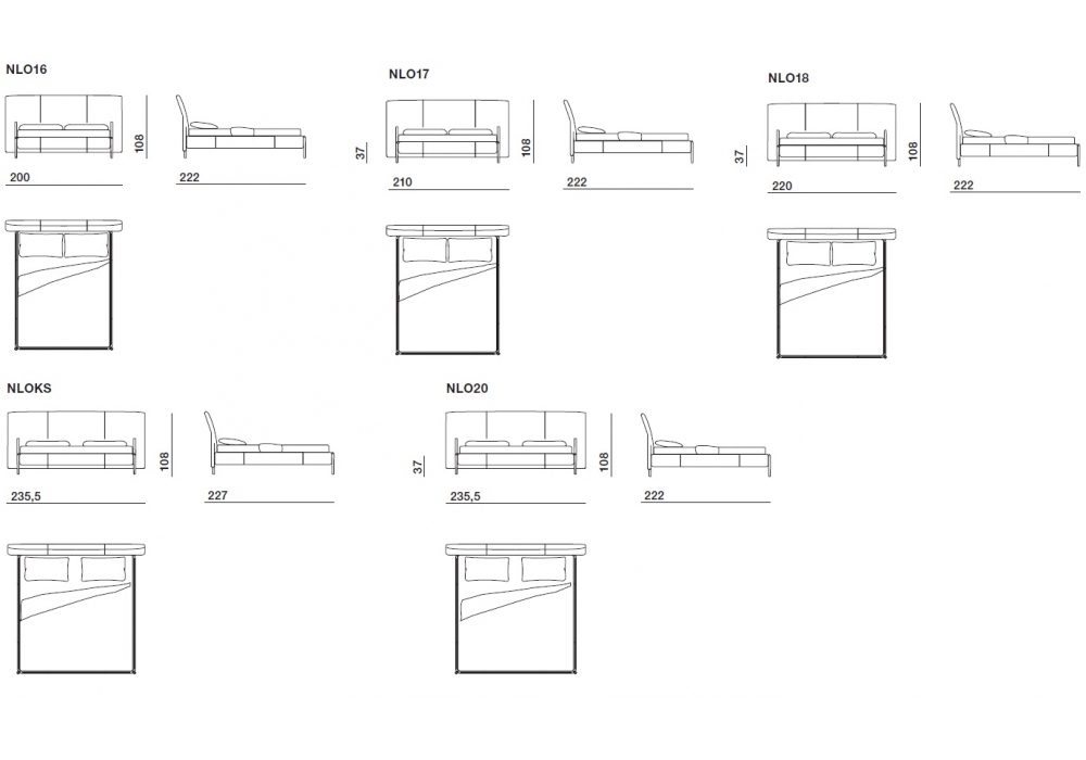 Nick conçu par Luca Nichetto pour Molteni&C est un lit avec tête de lit en bois de sapin massif (Picea Abies) et panneaux de particules. Rembourrage en mousse de polyuréthane à densité variable à haute capacité. Doublure en velours contrecollé. Cadre de lit avec cadre en métal avec rembourrage en mousse de polyuréthane. Revêtement en tissu ou cuir et pieds en chrome noir ou étain.