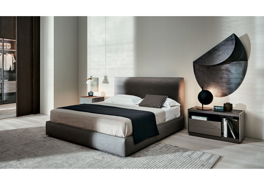 Ribbon conçu par Vincent Van Duysen pour Molteni&C est un lit avec structure de tête de lit en contreplaqué avec rembourrage en mousse de polyuréthane à densité variable. Rembourrage en tissu ou en cuir avec des détails en cuir, qui courent sur tout le périmètre de la tête de lit et du cadre de lit.