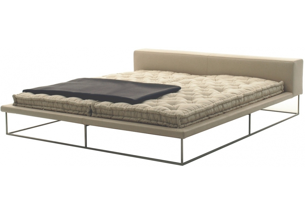 Ile Bed designed by Piero Lissoni for Living Divani is designed to enhance the time and space dedicated to rest. Bed with headboard and bedstead structure in double-paneled poplar and pine padded in differentiated density polyurethane foam. Covering in needle punched, resinated, nonwoven polyester fibre, bonded onto a polyamide velveteen backing. Base in AISI 304 stainless steel with matt-satin finish. Fabric or leather upholstery.