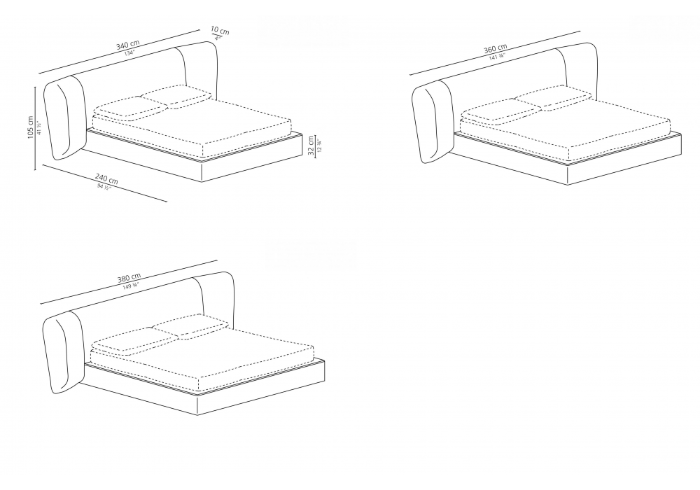 Royale conçu par Castello Lagravinese Studio pour Casamilano est un lit avec tête de lit en sapin massif, contreplaqué de pin et MDF. Base en panneaux de particules, rembourrage en mousse de polyuréthane et revêtement fixe en différents tissus ou cuirs.