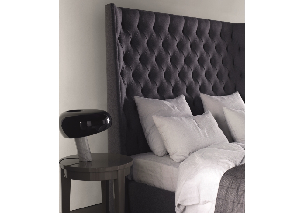 Turman conçu par Andrea Parisio pour Meridiani est un lit textile rembourré avec tête de lit capitonné non déhoussable. Structure démontable en bois avec barre centrale in métal. Pieds en bois teinté black, light et almond.