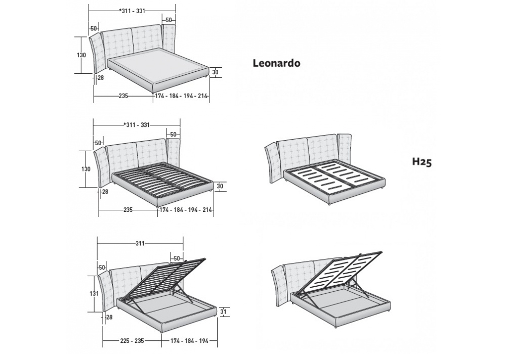 | Dimensions matelas | 160 x 200 cm; 170 x 200 cm; 180 x 200 cm. |
