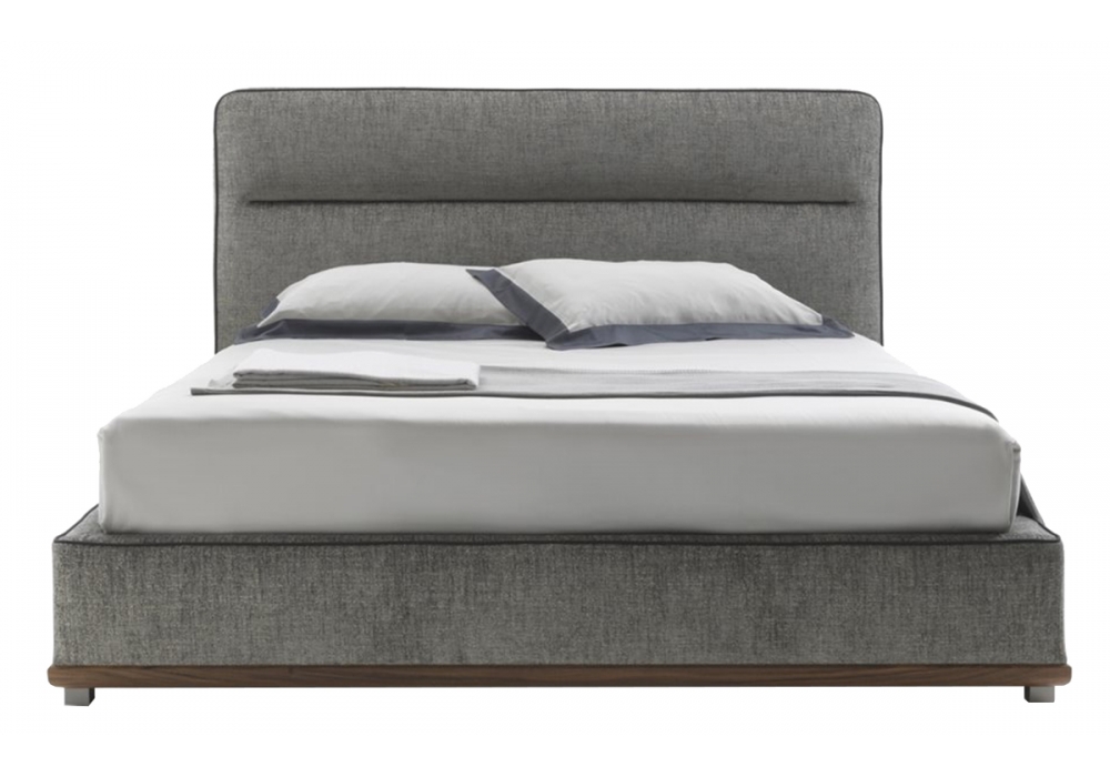 Kirk conçu par Carlo Ballabio pour Porada est un lit avec lattes en hêtre et base en noyer canaletta massif, soutenue par des pieds en métal gris peltre. Structure en bois contreplaqué massif, revêtue par polyurethane expansé indéformable. Revêtement disponible en cuir ou tissu. Matelas non inclus.