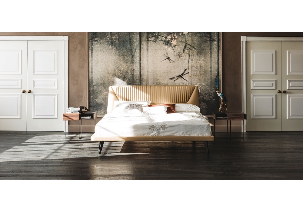 Amadeus conçu par Manzoni & Tapinassi pour Cattelan Italia est un lit avec pieds en acier peint disponible en deux finitions différentes. Revêtement en éco-cuir ou cuir. Sommier incluse, disponible en différentes dimensions.