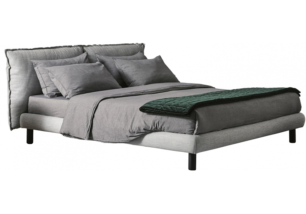 Oliver conçu par Andrea Parisio pour Meridiani est un lit avec structure en bois et barre centrale en métal, pieds en bois et revêtement amovible. La tête de lit est faite en polyuréthane expansé et de fibre polyester.