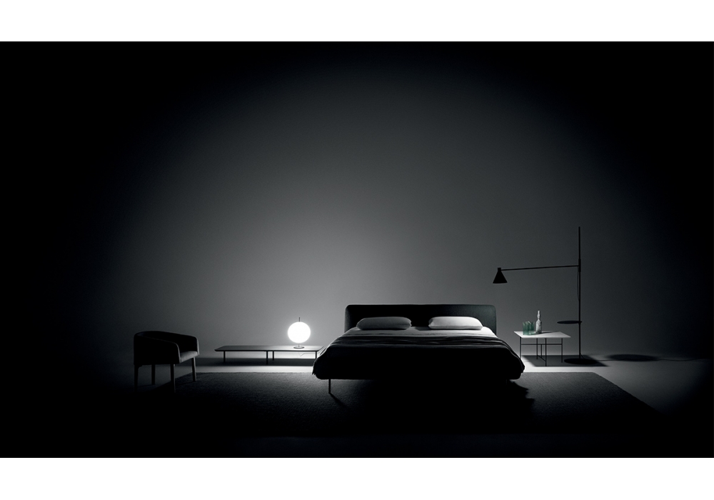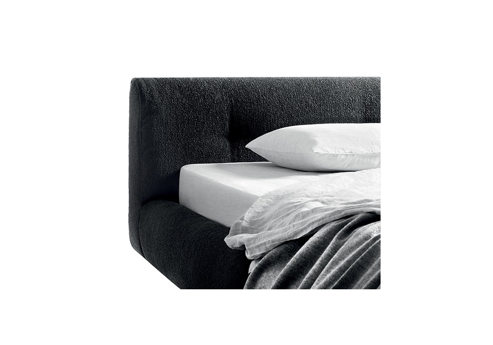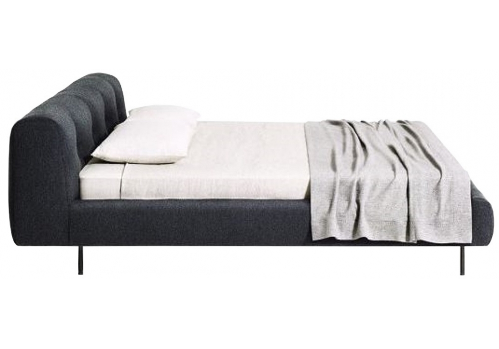 Erei conçu par Elisa Ossino pour DePadova est un lit avec châssis de la tête du lit en bois et rembourrage en polyuréthane. Sommier avec lattes de hêtre et pieds en acier peint. Revêtement déhoussable en tissu, fixe en cuir ou velours. Aussi disponible en 2 dimensions.