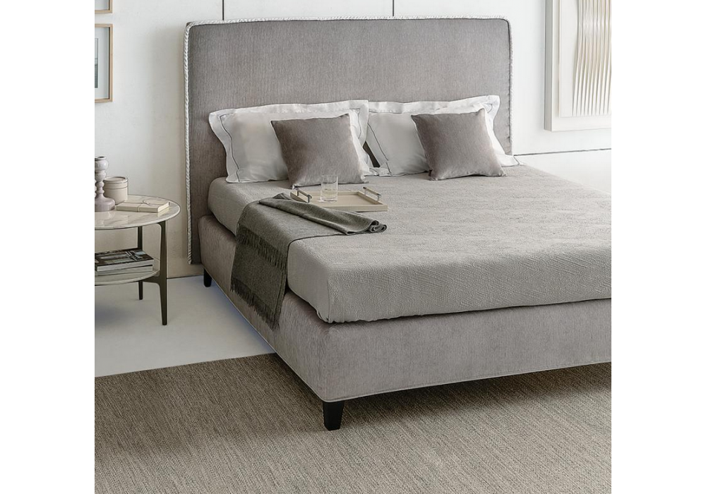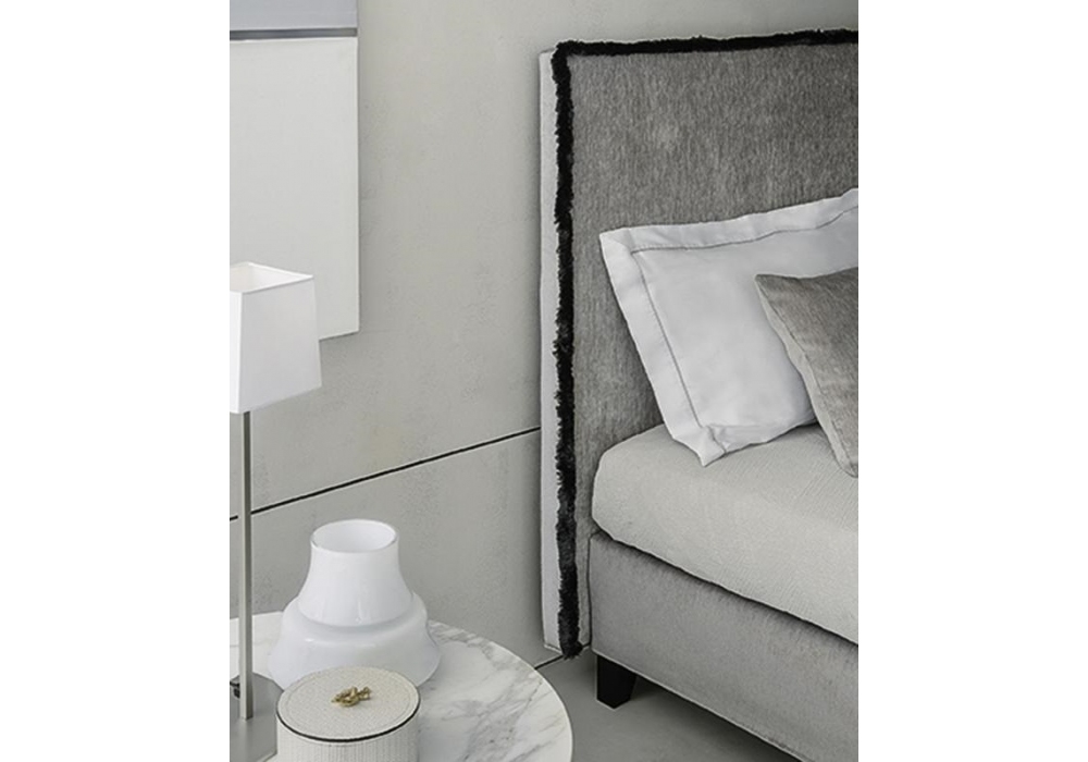 Majestic conçu par Paola Navone pour Casamilano est un lit avec tête et base en panneau de particules de bois. Rembourrage en mousse de polyuréthane. Pieds en hêtre massif, ton ébène. Revêtement déhoussable (tissu) / non déhoussable (cuir). Disponible en 3 dimensions.
