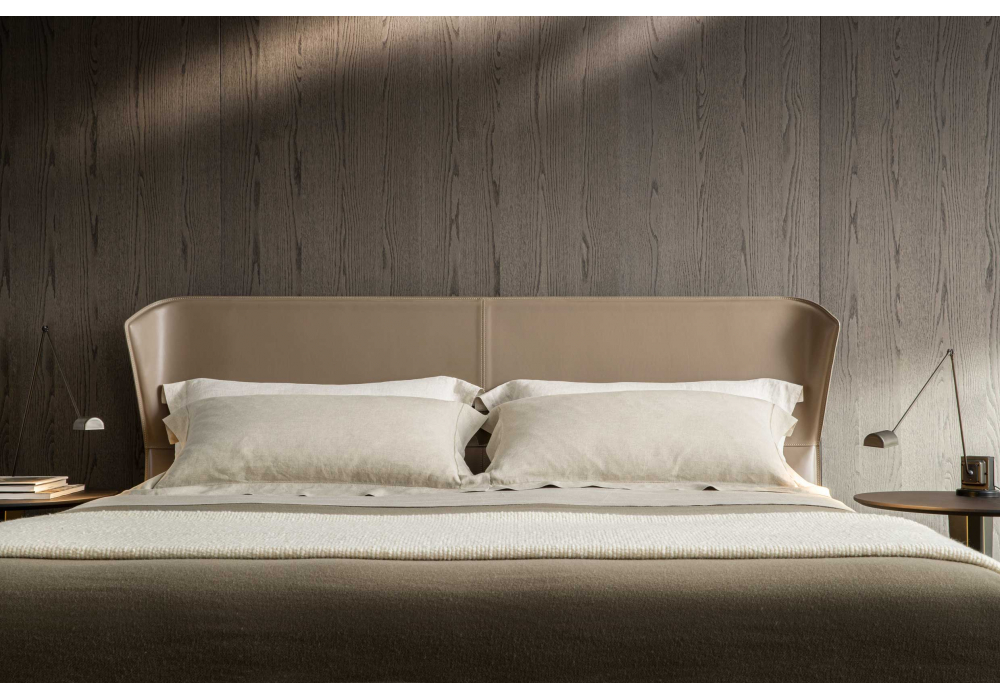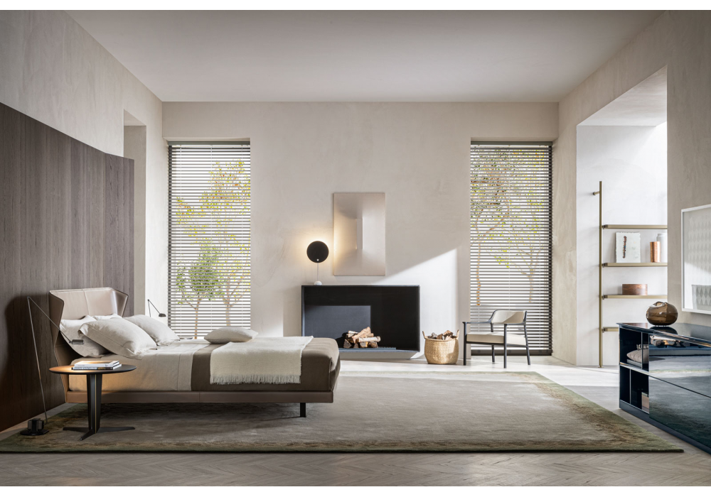 Azul conçu par Nicola Gallizia pour Molteni&C est un lit fait avec cadre de lit version fixe avec pieds peints en noir ou version conteneur avec pieds en acier chromé. Revêtement en tissu, cuir ou peau. Disponible en différentes finitions et dimensions.