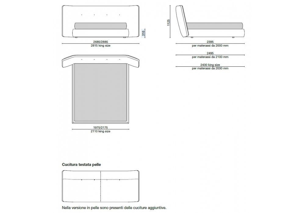 | Dimensions matelas | 180 x 200 cm; 180 x 210 cm; 200 x 200 cm; 210 x 210 cm; King Size_ 193 x 203 cm. |