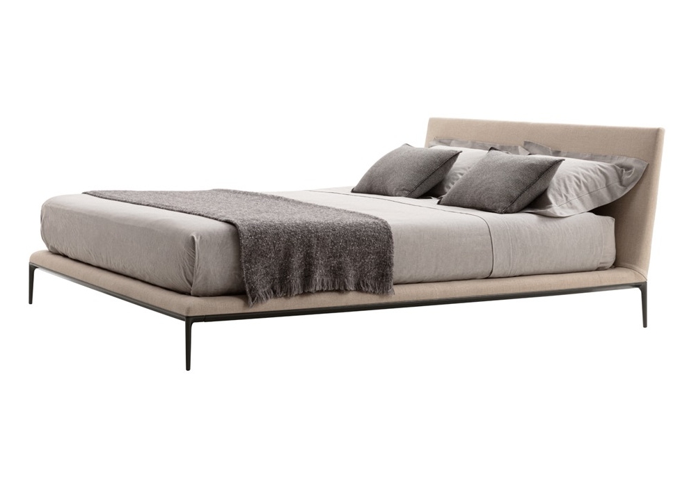 Atoll conçu par Antonio Citterio pour B&B Italia est un lit avec structure en aluminium en finition polie brossée, chromée noire ou vernie étain. Rembourrage disponible en tissu ou en cuir.