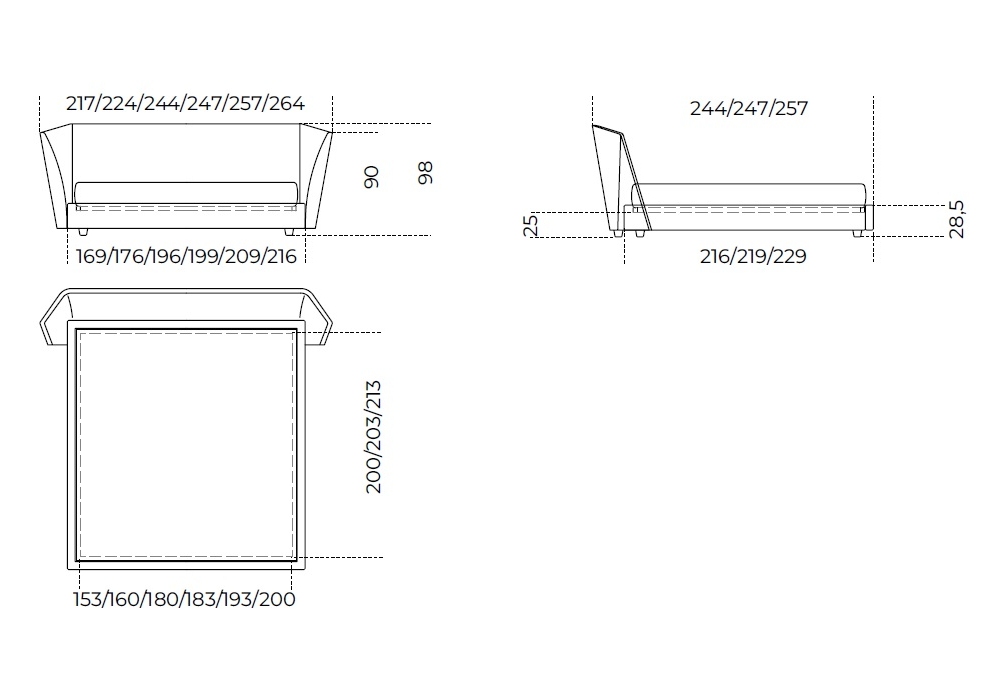 | Longueur | 217 / 224 / 244 / 247 / 257 / 264 cm |