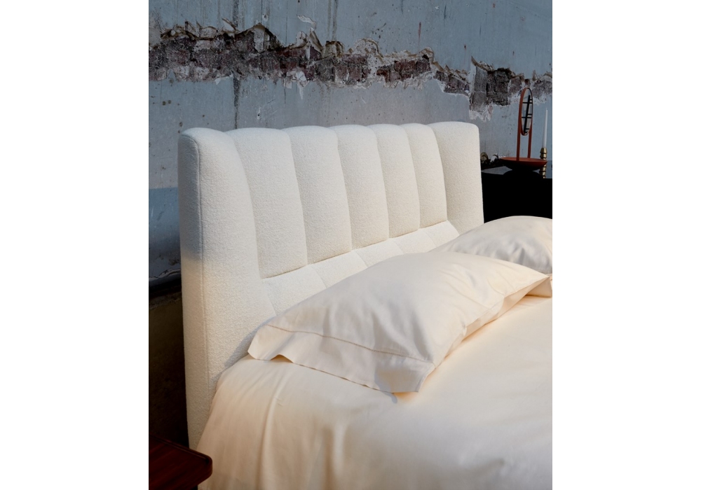 Evisa conçue par Philippe Nigro pour Ligne Roset est un lit avec revêtement en tissu ou cuir. Disponible en 2 dimensions. Le pari gagnant de ce lit est dû à la fois au grand confort physique et visuel et à la sensation de raffinement de la tête de lit qui ne manque pas de rappeler le style art déco.