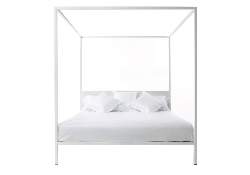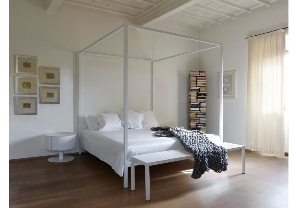 ILletto conçu par Lapo Ciatti pour Opinion Ciatti est un lit à baldaquin avec structure portante en acier avec tête de lit souple en contreplaqué rembourré et recouvert de tissu ou de cuir. Disponible en différentes finitions et dimensions. Matelas non inclus.
