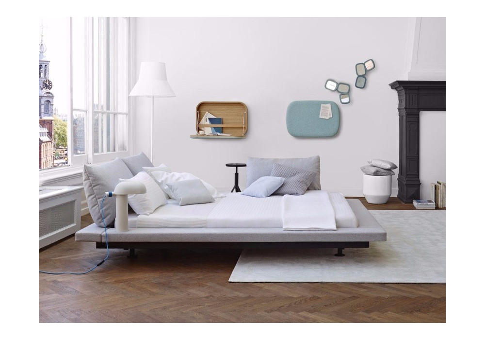 Peter Maly 2 conçu par Peter Maly pour Ligne Roset est un lit avec structure en profilés d'aluminium anodisé noir. Panneaux latéraux en panneaux de particules 3 plis revêtus de mousse polyuréthane et ouate de polyester. Pieds cylindriques avec plaque en acier laqué noir mat - 2 hauteurs au choix: 10 cm ou 16 cm. Le cadre de lit accepte toutes sortes de sommiers à lattes et de matelas. Revêtement en tissu ou cuir. Des coussins d'oreiller amovibles avec des fixations métalliques peuvent être placés à n'importe quel endroit autour du lit. Coussins en mousse polyuréthane haute densité Bultex avec âme en acier et suspension intégrale en sangles élastiques. Disponible en différentes dimensions.