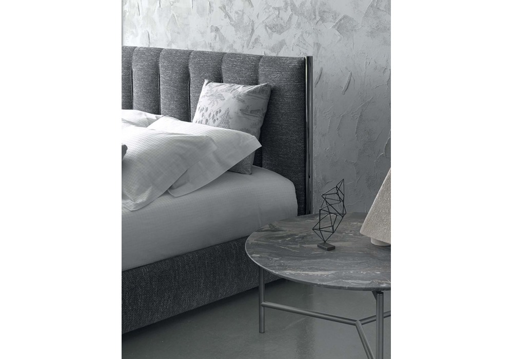 Koy conçu par Carlo Colombo pour Flou est un lit avec base et tête de lit rembourrés avec revêtement en tissu ou en cuir. Structure en métal qui descend jusqu’à former les pieds en finition nickel noir brillant ou bruni mat. Le sommier est disponible avec base fixe, base à coffre, base à mouvement électrique et avec base « Leonardo ».
