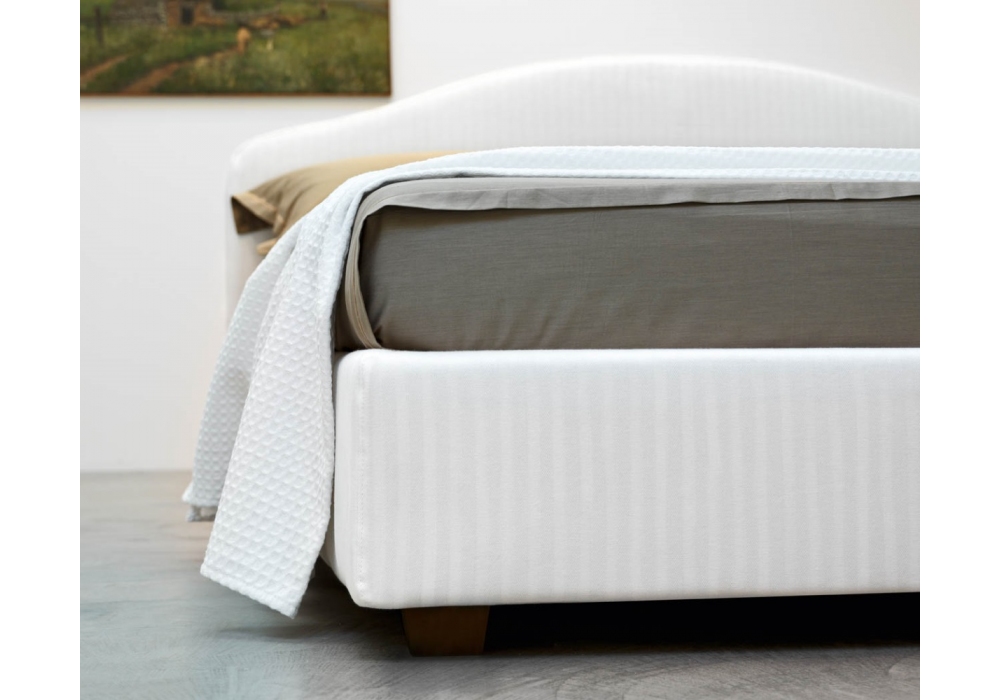 Elba conçu par Orizzonti Design Center pour Casamania & Horm est un lit rembourré avec revêtement amovible en tissu, cuir ou simili cuir. Sommier à lattes fixe, cadre de lit à l'extérieur du matelas et pieds en bois de hêtre inclus dans le prix. Disponible en différentes dimensions.