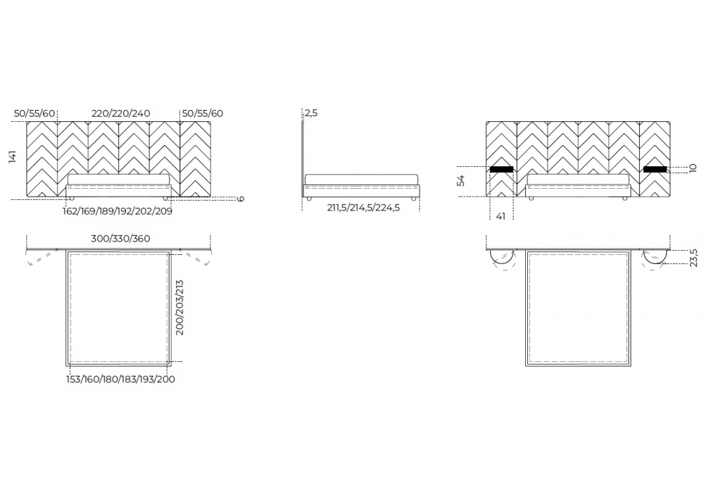 | Largeur | 211,5 / 214,5 / 224,5 cm |
