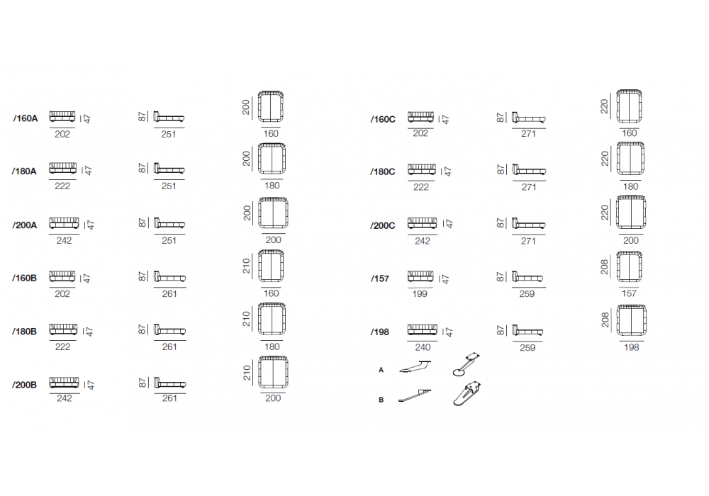 DS-1164 conçu par Hugo de Ruiter pour De Sede est un lit avec structure en métal peint en noir avec matériau de bordure. Bord du lit en élément en mousse profilée et dossier avec âme en mousse Rembourrage SEAT-Lux en différentes finitions. Disponible en différentes tailles. Version pied A Revêtement métallique en aluminium ou couleur noire. Version pied B Pied B en métal chromé poli.