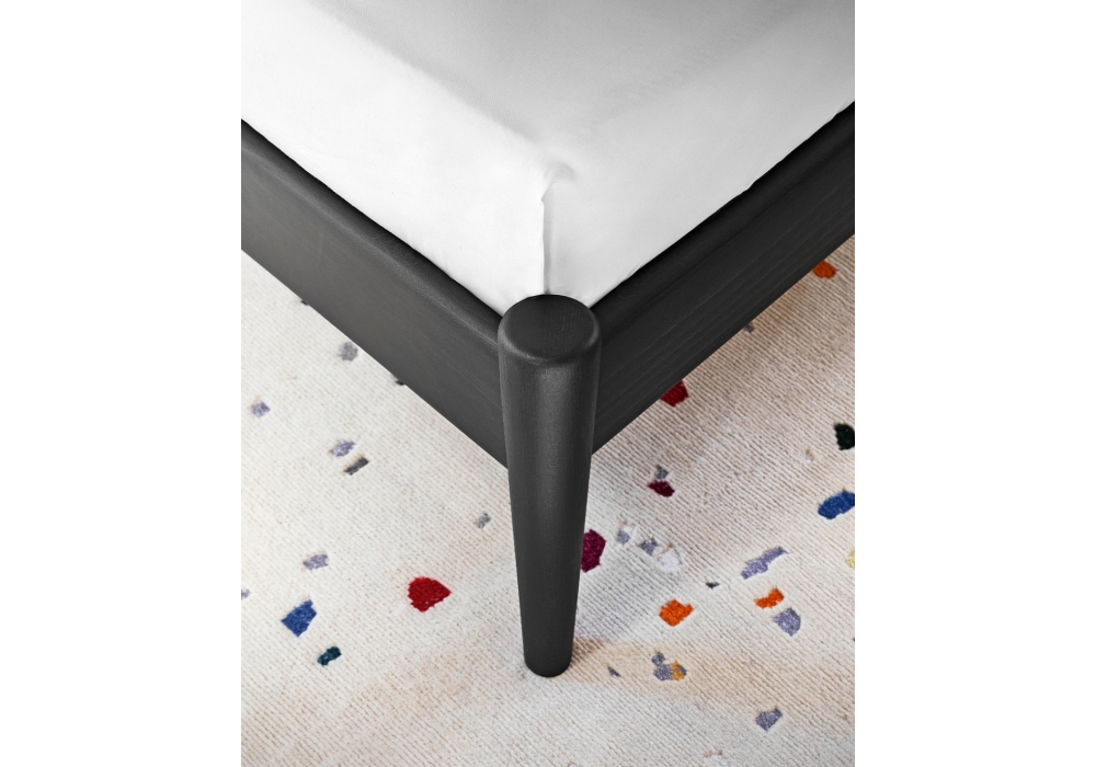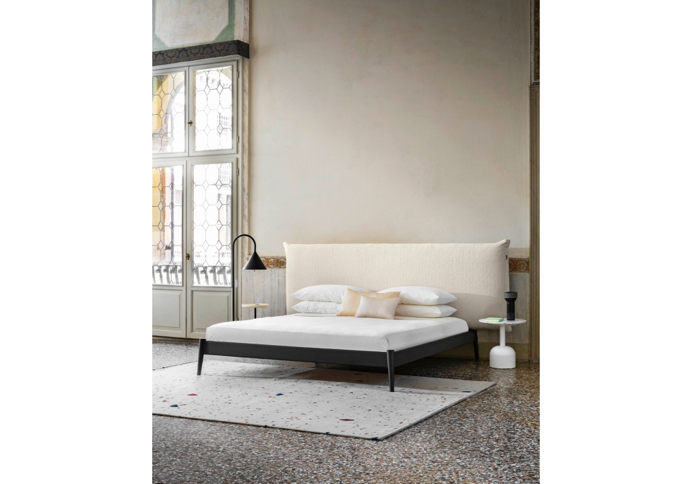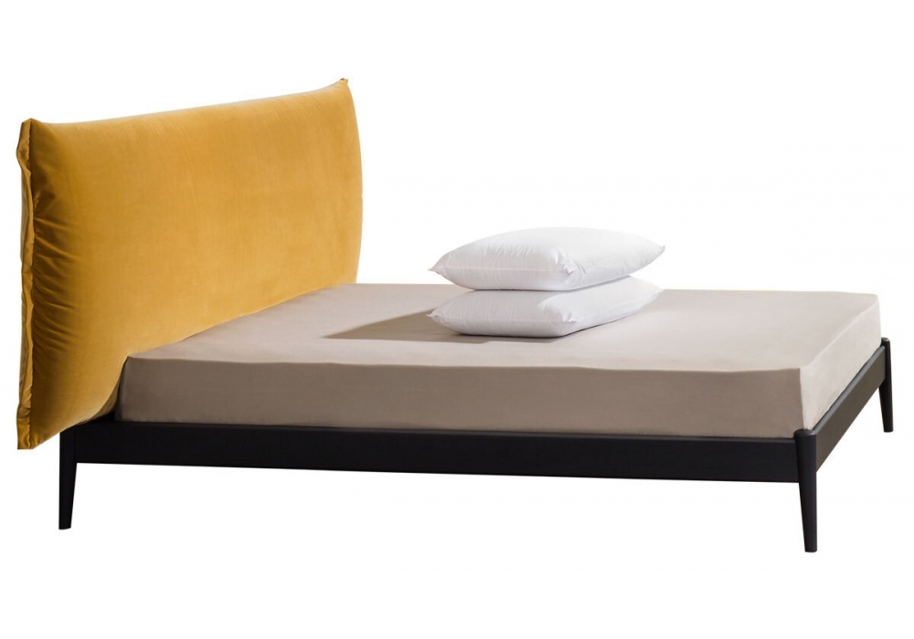 Shiko Wonder conçu par E-ggs pour Miniforms est un lit avec structure en frêne bleu foncé ou anillina, dossier rectangulaire revêtu en tissu ou éco-cuir. Disponible en différentes finitions et tailles.