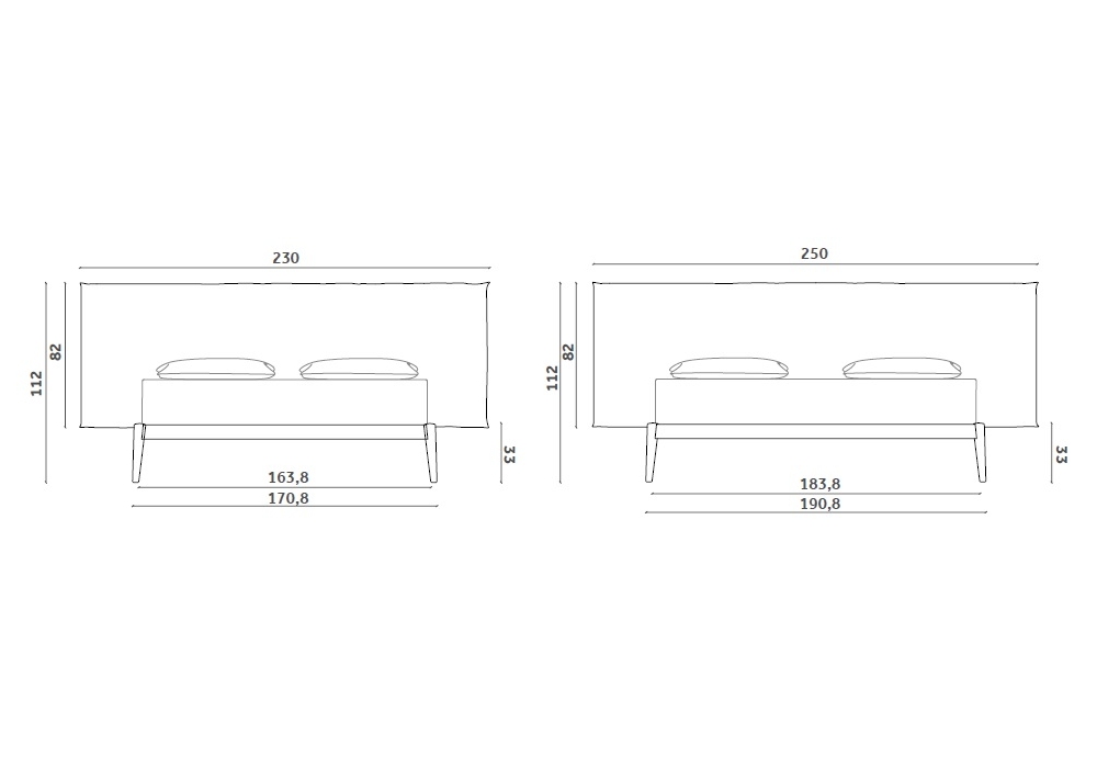 | Dimensions | • 230 x 220 x H 112 cm; • 250 x 220 x H 112 cm |