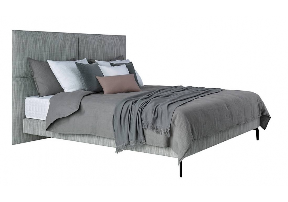 Portofino conçue par Quaglio Simonelli pour Treca Interiors Paris est une tête de lit réalisée avec une structure en bois et un revêtement en tissu inamovible. Saillant et porteur avec support sur une base noire.