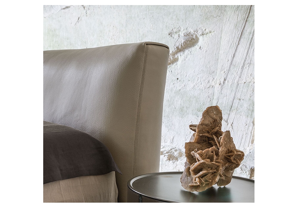 Parsifal conçu par Giuseppe Bavuso pour Alivar est un lit composé d'une tête de lit en acier et bois avec rembourrage en mousse de polyuréthane à densité différenciée et doublure en fibre de polyester. Cadre de lit en contreplaqué de sapin recouvert de mousse de polyuréthane et doublure couplée. Pieds en acier chromé et revêtement amovible en cuir ou tissu. Base en multiplis de bouleau à lattes courbes avec régulateurs de rigidité dans la zone lombaire. Sommier à mouvement électrique sur demande. Également disponible dans la version avec conteneur à fond relevable.