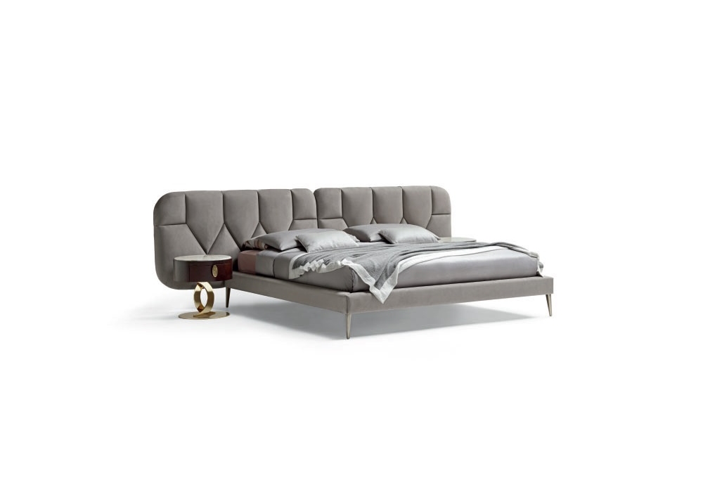 Dorothy conçu par Castello Lagravinese Studio pour Opera Contemporary est un lit avec pieds en métal et revêtement disponible en tissu ou cuir.