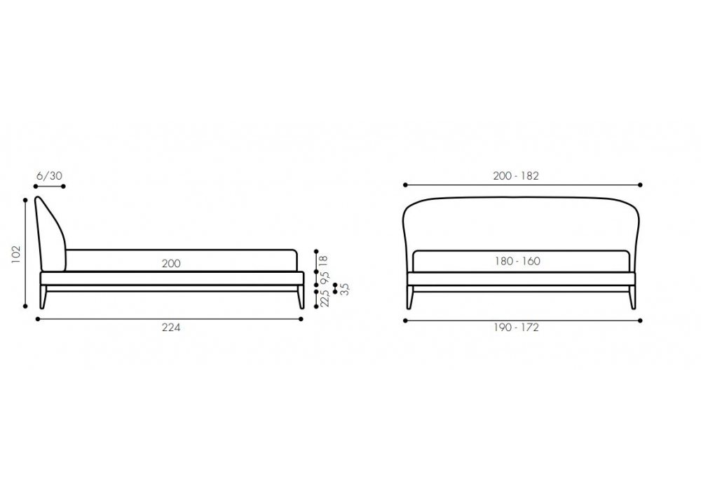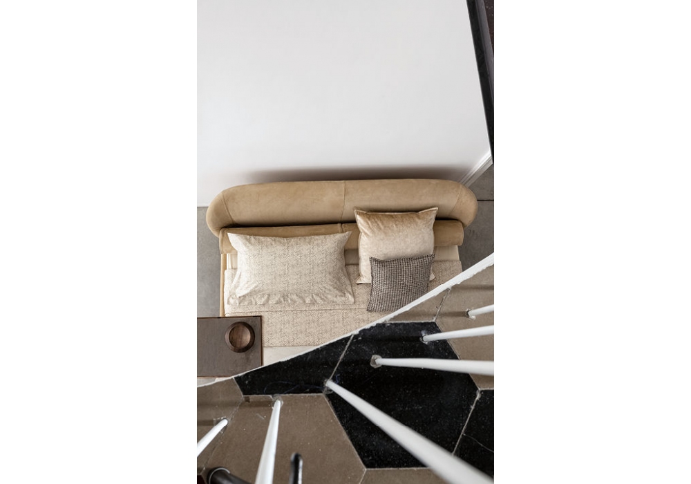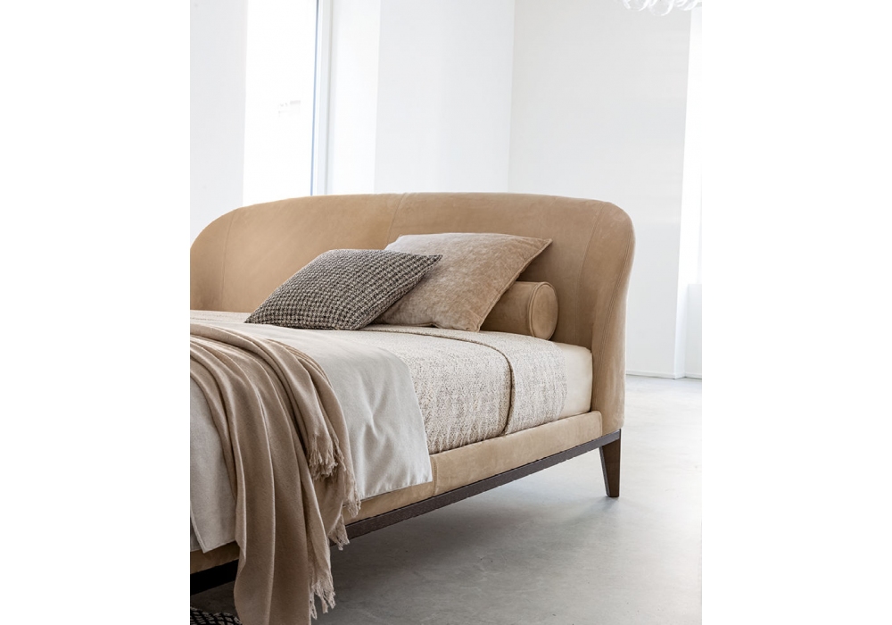 Carnaby Wood conçu par Studio Balutto Associati pour Twils est un lit rembourré avec un cadre de lit de 13 cm de haut, réalisé en différentes tailles. La housse n'est pas amovible, en différents tissus et couleurs. La base et le cadre sont en bois de frêne couleur café.