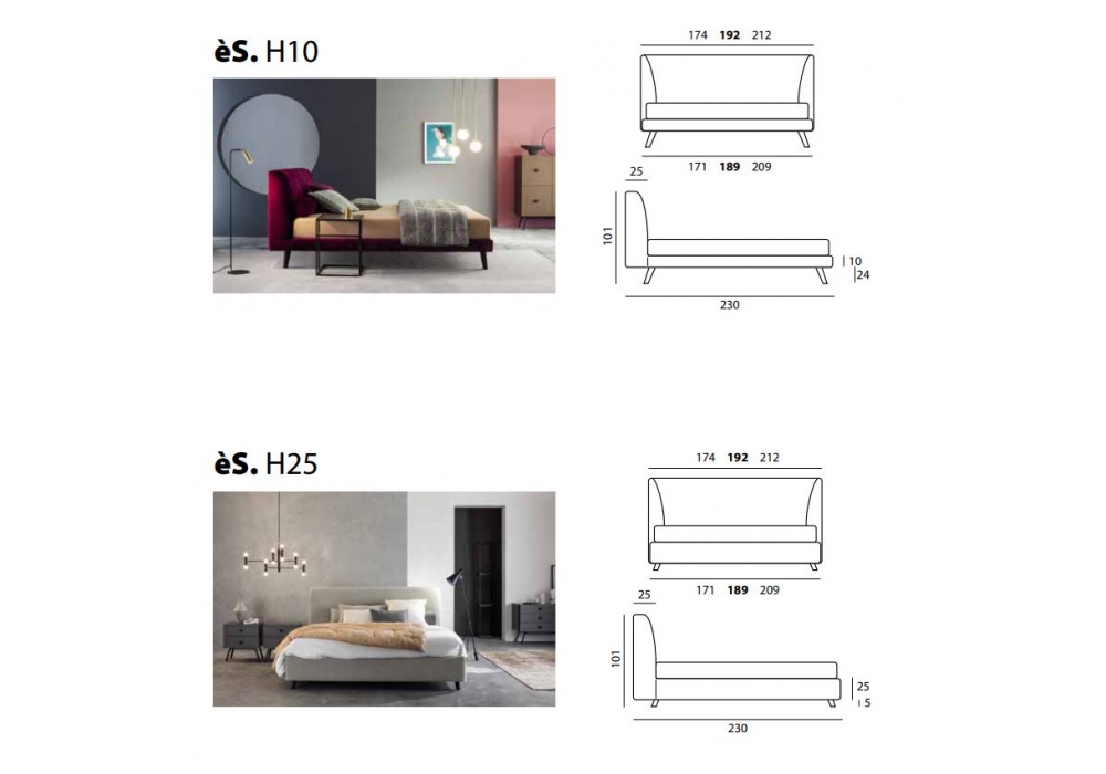 èS conçu et produit par Twils est un lit rembourré avec un cadre de lit de 10 ou 25 cm de haut. La housse amovible est disponible en différents tissus et couleurs. Le lit est disponible en différents modèles et tailles. Les pieds sont en bois incliné avec une finition nacrée.