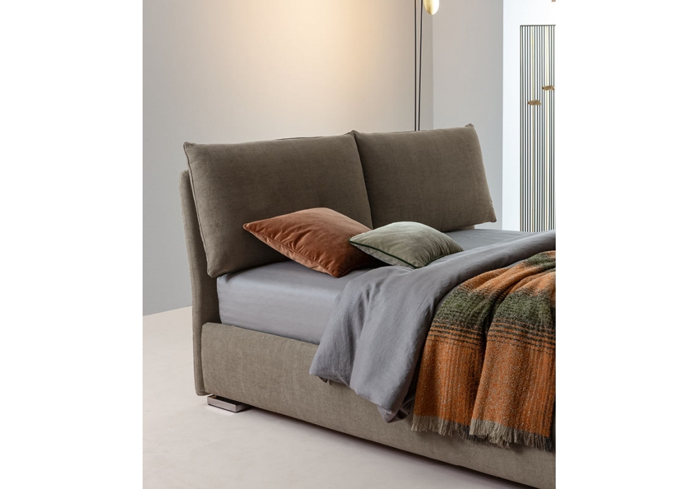 Soul conçu et produit par Twils est un lit rembourré avec un cadre de lit de 28 cm de haut, disponible en différents modèles et tailles. La housse amovible est disponible dans de nombreux tissus et coloris. Les pieds (PIE38) ont une finition nacrée.