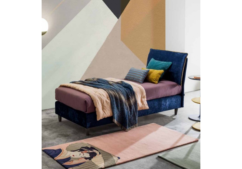 Giselle conçu et produit par Twils est un lit simple avec un cadre de lit de 25 cm de haut. Les pieds sont en nacre (PIE38). Housse amovible en différents tissus et couleurs. Disponible en différents modèles et tailles. Sur demande, les pieds peuvent être réalisés dans d'autres finitions.