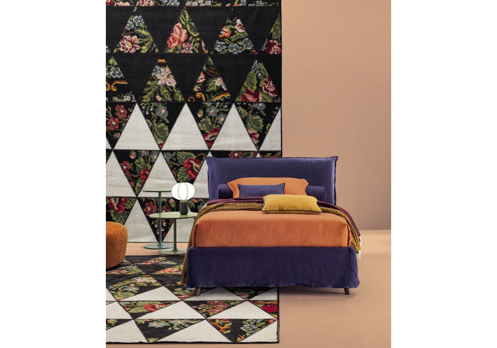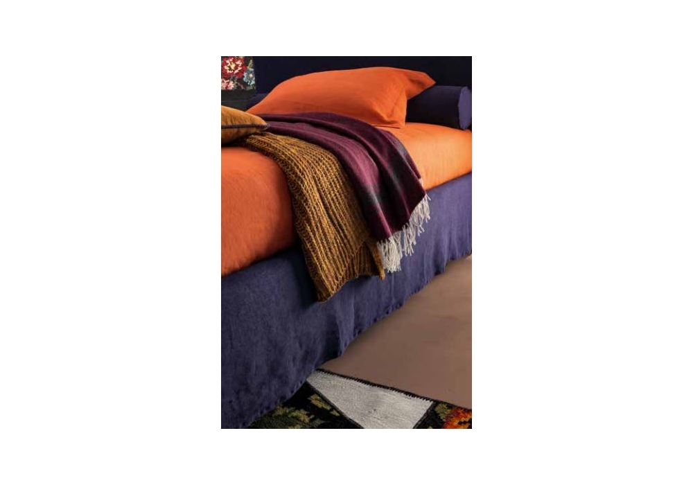 Edo conçu et produit par Twils est un lit simple avec un cadre de lit de 25 cm de haut. Les pieds sont en nacre (PIE68). Housse amovible en différents tissus et couleurs. Disponible en différents modèles et tailles. Sur demande, les pieds peuvent être réalisés dans d'autres finitions.
