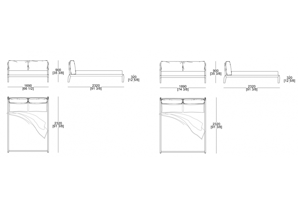 Eladio conçu par Allievi & Viganò pour MisuraEmme est un lit avec sommier fixe réalisé avec une structure entièrement en chêne massif façonné et fini à la main et des traverses en acier pour le support du sommier. Coussins de tête de lit en mousse de polyuréthane et matelas en plumes. Rembourrage en tissu ou cuir amovible avec des lacets arrière pour l'ancrage à la tête de lit.
