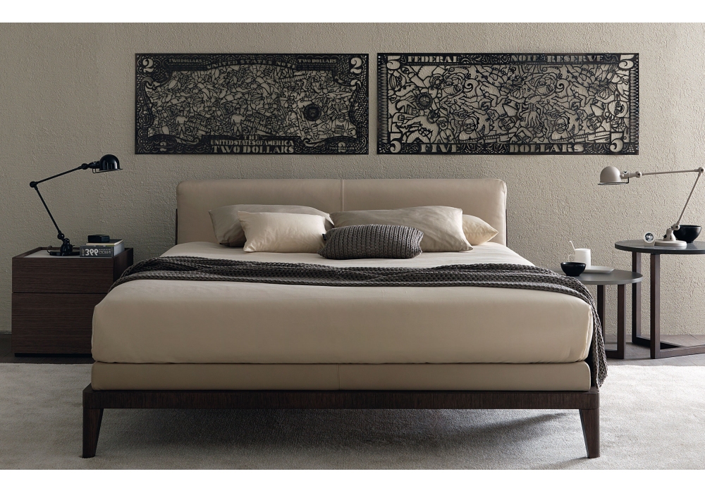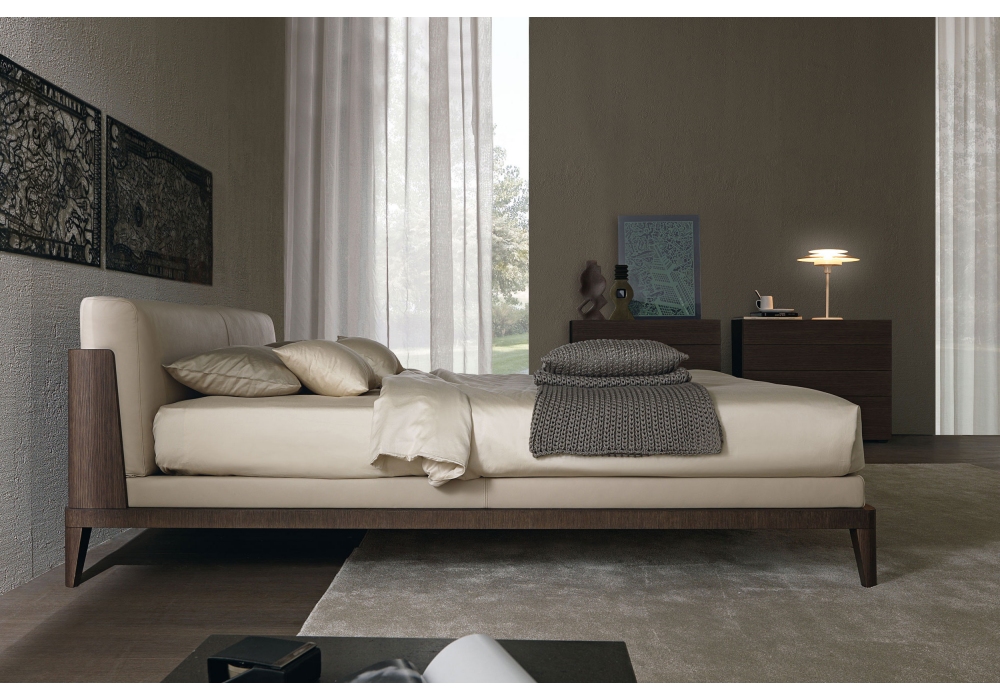 Assuan conçu par Ferruccio Laviani pour MisuraEmme est un lit avec sommier fixe dédié réalisé avec une structure en bois et des coussins de tête de lit en mousse de polyuréthane à densité différenciée recouverte de ouate synthétique et couplée de velours. Revêtement amovible en tissu, éco-cuir ou cuir, avec fermeture éclair.