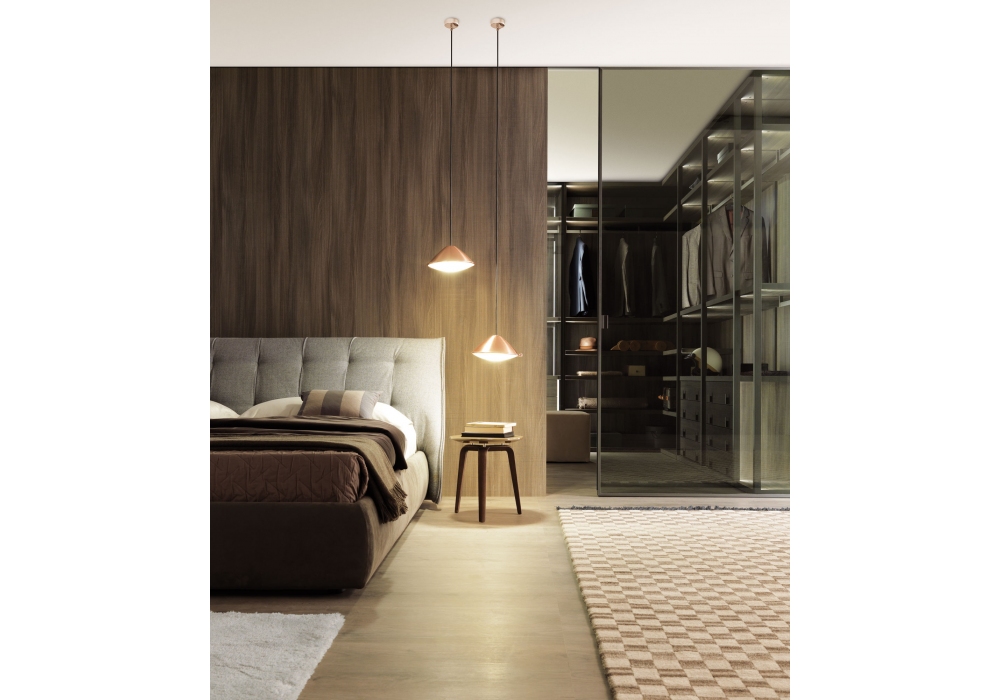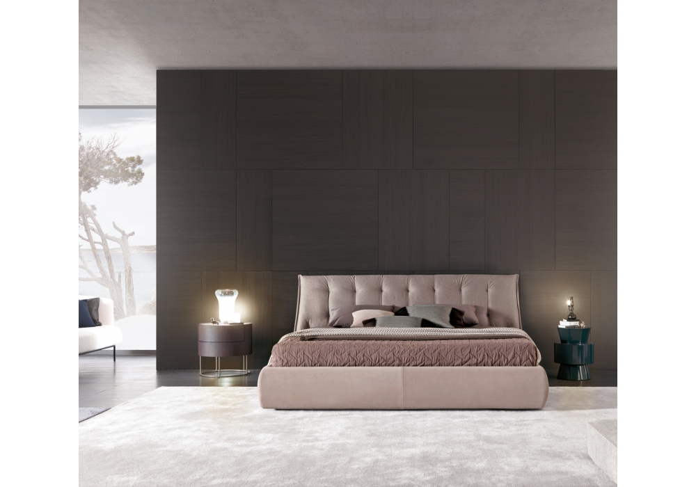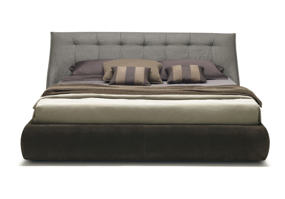 Sumo conçu par Mauro Lipparini pour MisuraEmme est un lit avec tête de lit rembourrée avec revêtement inamovible en tissu, éco-cuir ou cuir. Sur demande, il est possible de recouvrir la partie avant de la tête de lit avec un tissu différent du couvre-lit. Disponible avec sommier relevable ou avec sommier fixe.