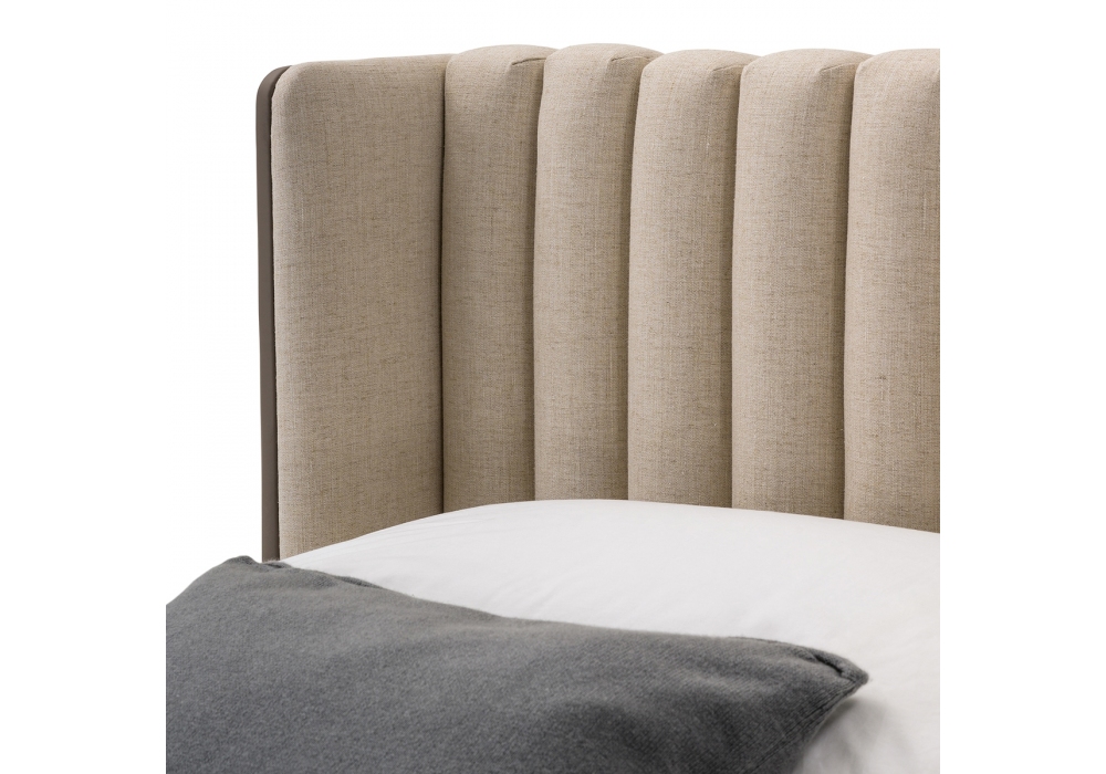 Domus conçu par Matteo Nunziati pour Turri est un lit avec structure en contreplaqué et bois massif avec rembourrage en mousse de polyuréthane multi-densité. Structure et tête de lit recouvertes de différents cuirs ou tissus.