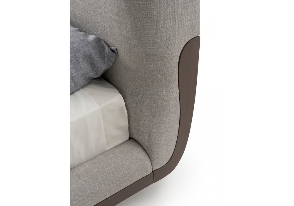 Soul conçu par Giuseppe Viganò pour Tutti est un lit avec structure en contreplaqué, bois massif et panneaux de particules plaqués noyer, rembourrage en mousse de polyuréthane multi-densité et revêtement inamovible en tissu ou cuir. Disponible dans la version avec ou sans inserts en bois de noyer.